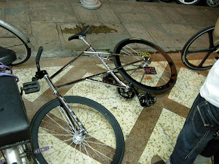 クロモリの細身のフレームにカラーパーツと完成車から攻めの一台です。