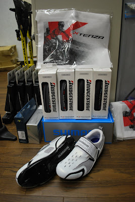 手前白いのがFUJI ROUBAIX2.0 ¥92.400-シマノ SORA コンポ
